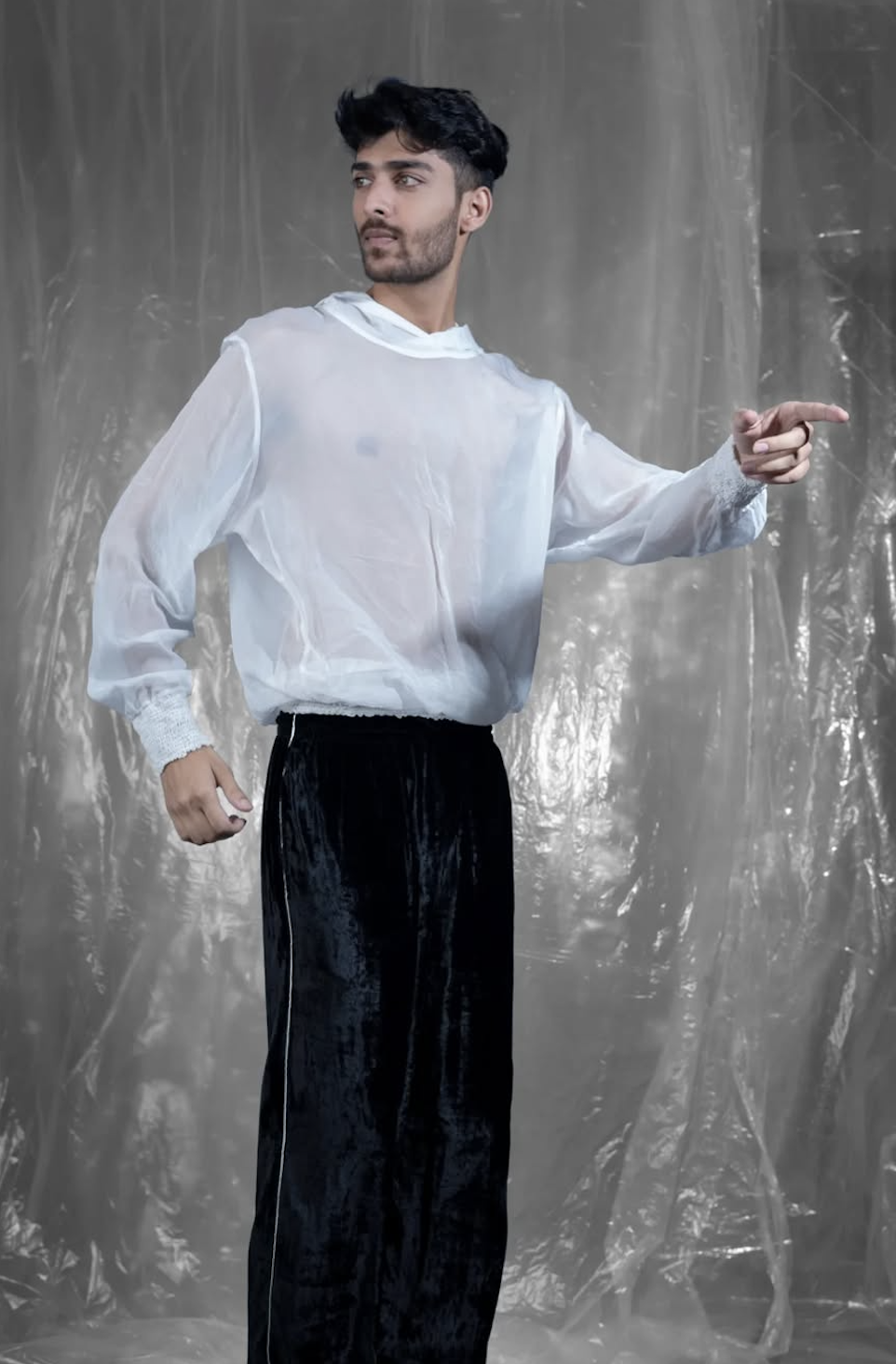 I model across masculine and soft, expressive concepts. Being in front of the camera or mirror is where my energy fully ignites, bringing each concept to life.